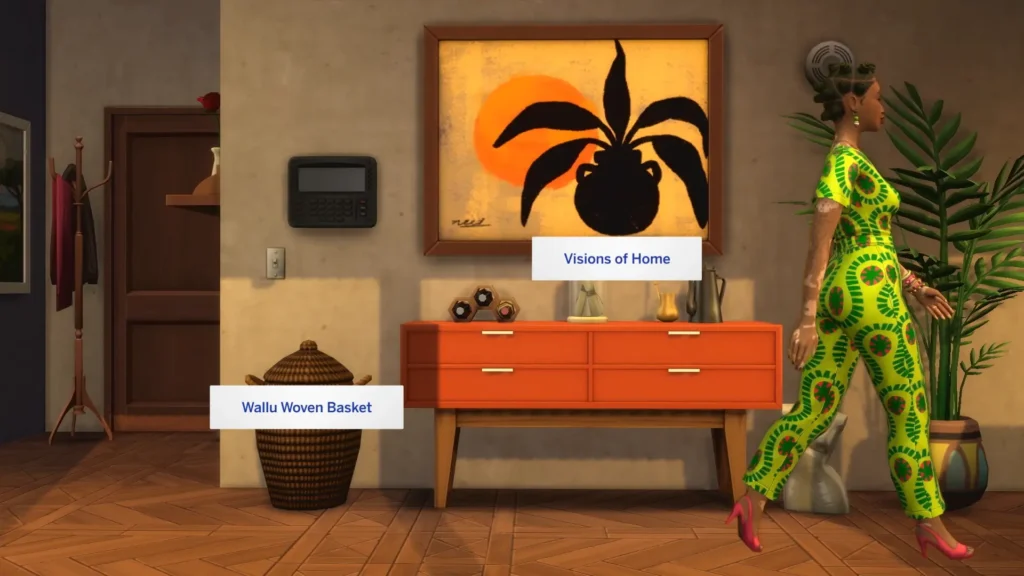 Screenshot of The Sims 4 West African Design update featuring Build/Buy decor inspired by West African craftsmanship.